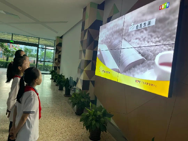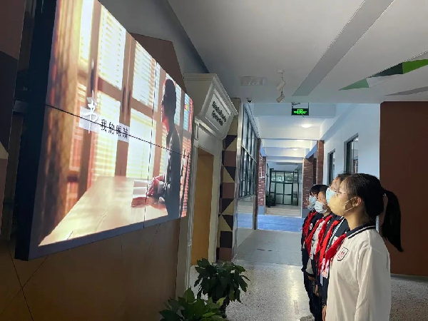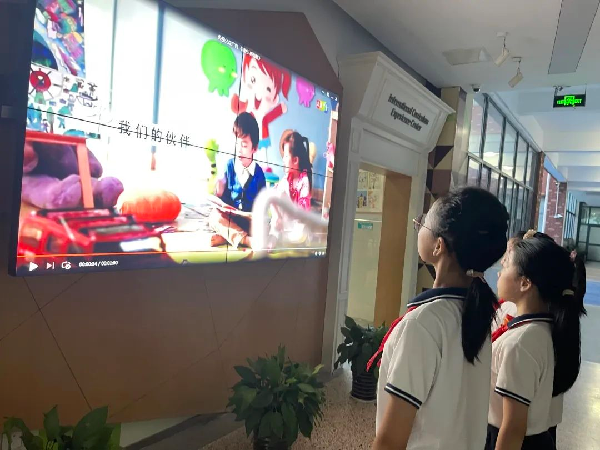 九月上旬,在一楼大厅循环播放公益宣传片,让学生们更好得关注到公益。